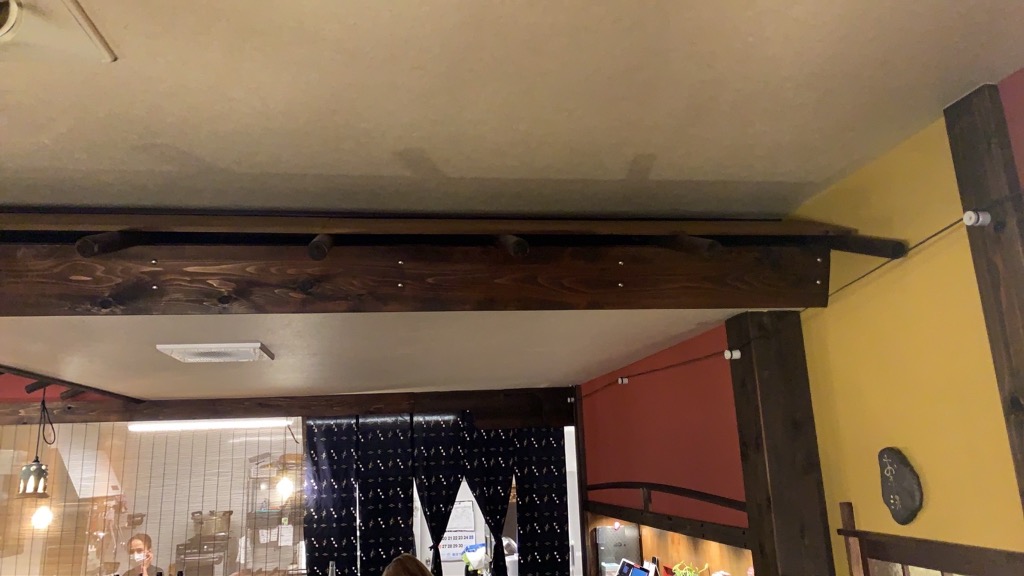 この写真は、オーナーが手掛けた「おでんバル 楽」の入口部分のスペースとなっております。今回は、店内奥との空間を仕切る「壁」についてご紹介します。
